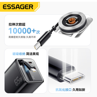 Quick自带伸缩充电线适用于苹果17 ESSAGER港澳版 charger GaN 16平板电脑手机typec充电器火牛 UK氮化镓65W