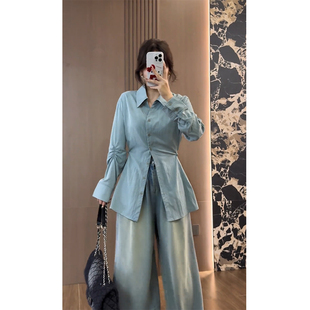 2025新款 大码 女春季 衬衫 气质复古衬衣 胖MM韩系设计感收腰显瘦长袖