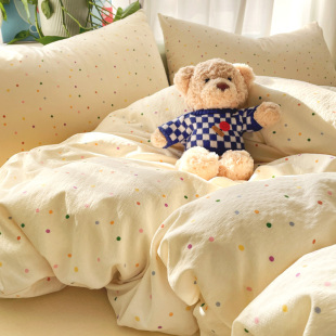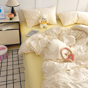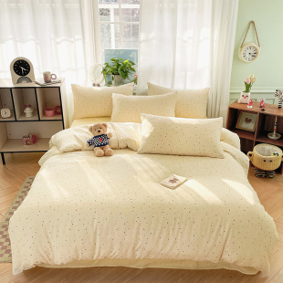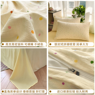 A类小清新针织双层纱床上四件套2025新款 床单被套学生宿舍三件套
