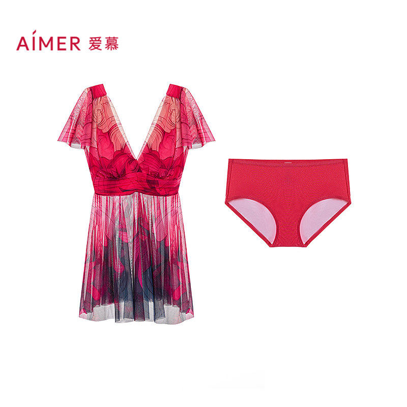 爱慕25春夏花颜泳装 分体平角泳衣AM67A902 女士海边沙滩裙式