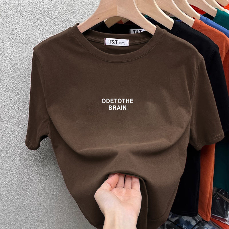内搭上衣潮 T恤女设计感加厚保暖打底衫 2026新款 磨毛正肩纯棉短袖