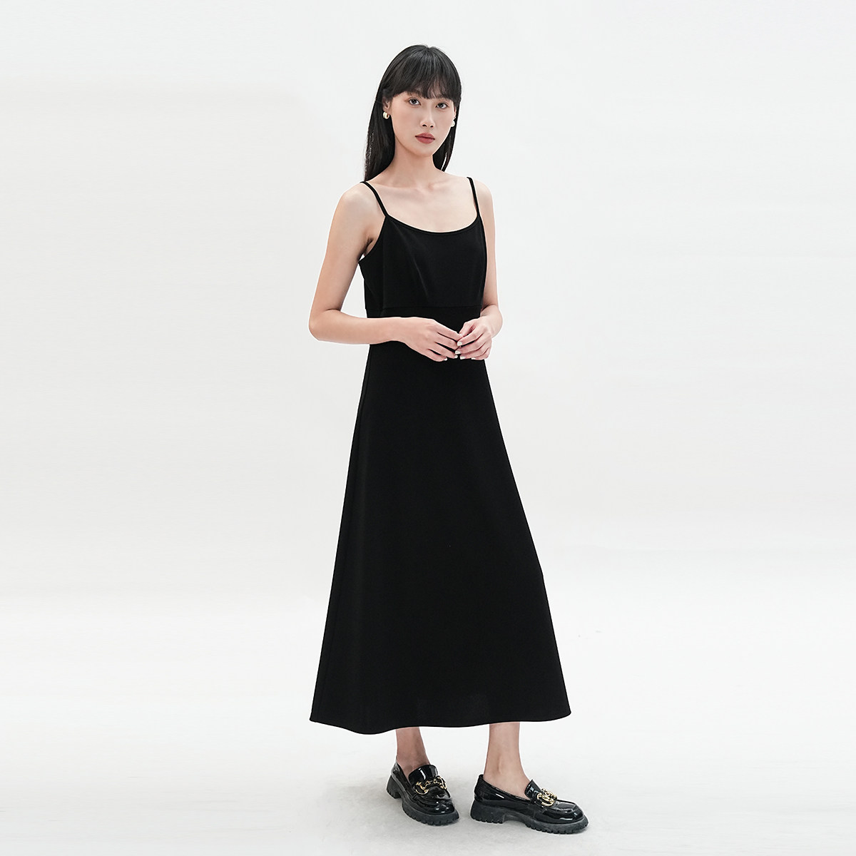 甜美气质丝绒连衣裙假两件拼接黑色短裙女 法式 越韩小鱼 莉芙千金