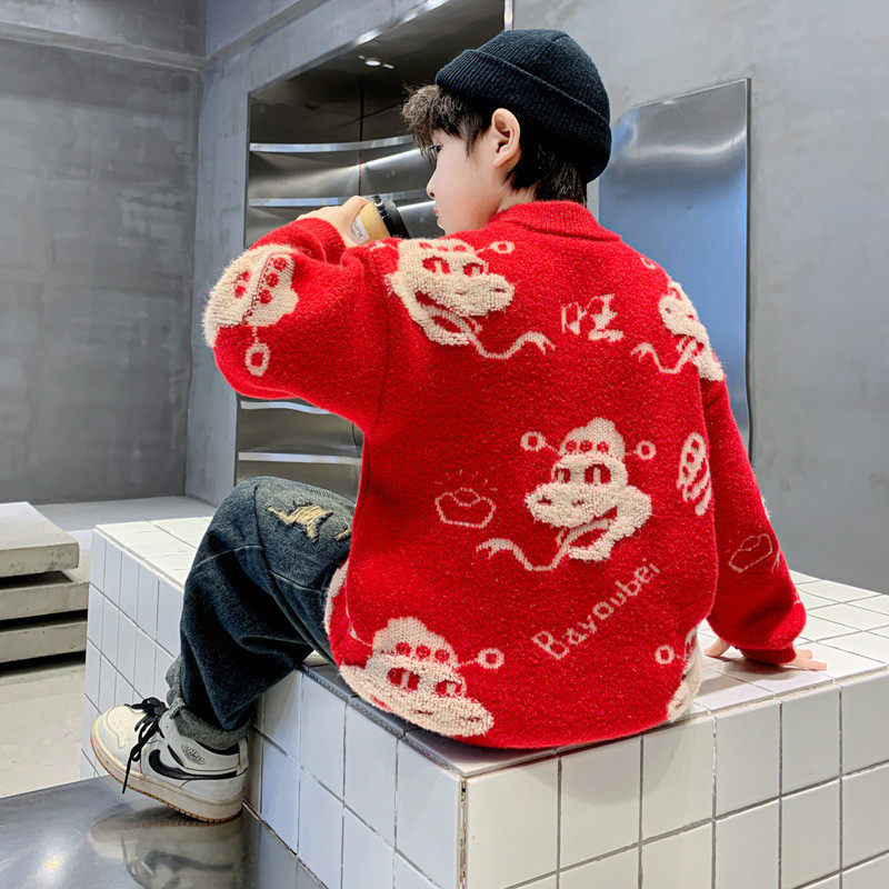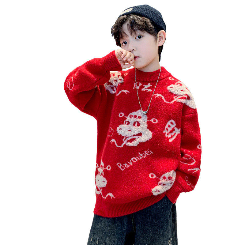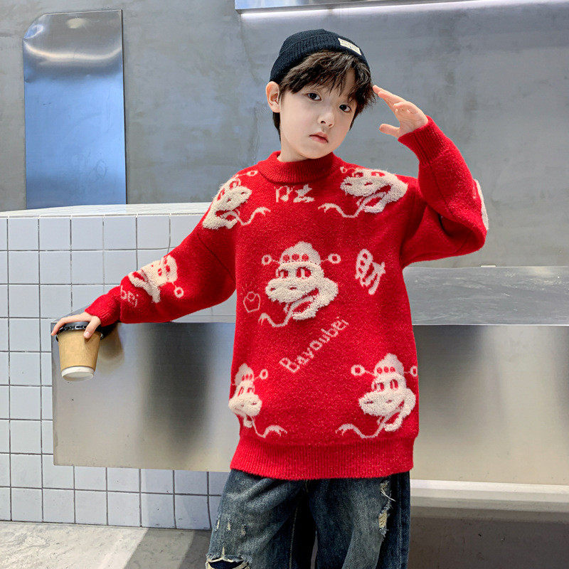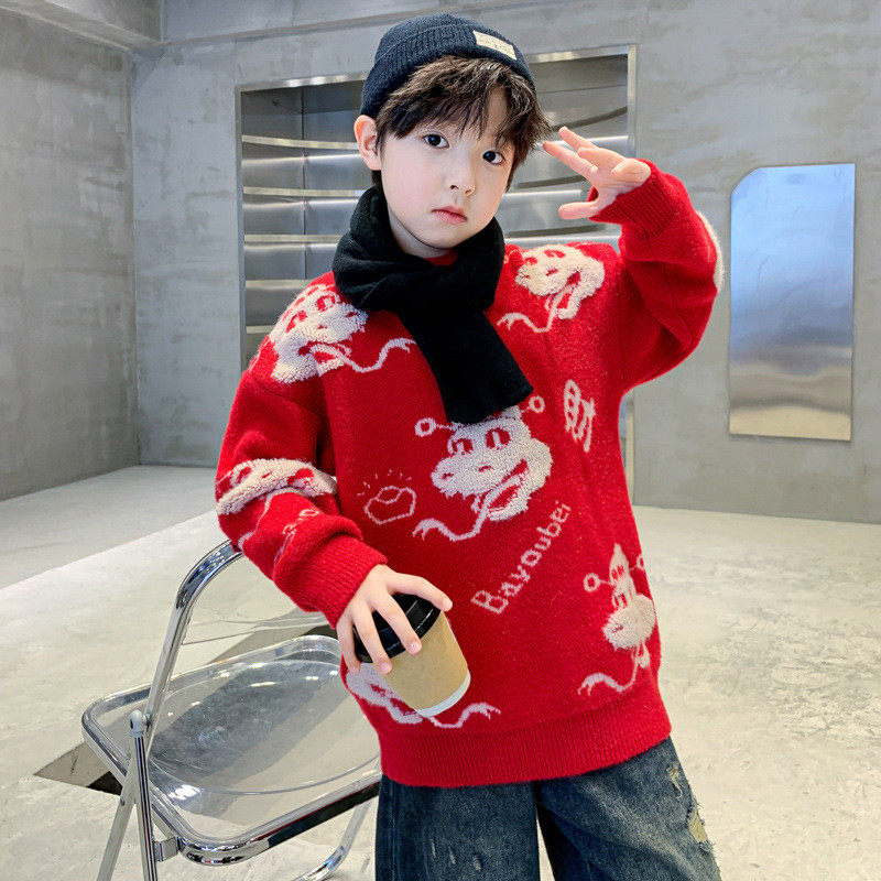 红色针织儿童本命蛇年上衣 中大童加厚冬季 男童毛衣秋冬款 2025新款