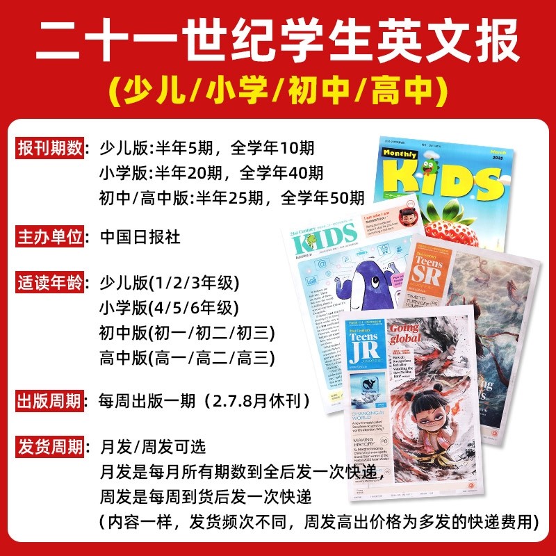 2026年春秋季 21世纪英文报小学版 2025 高中版 学期全年订阅二十一世纪学生英语周报纸初一初二初三高一高二高三少儿画刊杂志 初中版