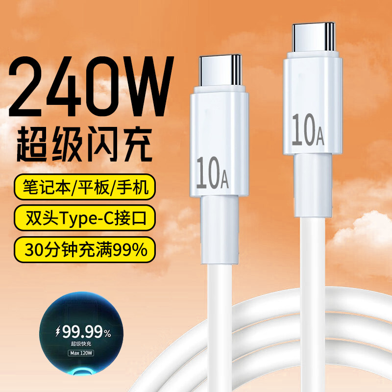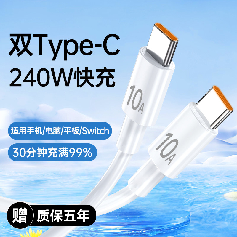 240W超级闪充双头type c数据线适用苹果华为小米笔记本电脑ipad车载ctoc快充电线10A加长2米3米