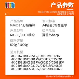 6081 C5082R添加粉C3121r 3081 3082 3051 C4081 3581 6082RV 适用夏普c2622r碳粉MX 5081 30CT墨粉C2621R