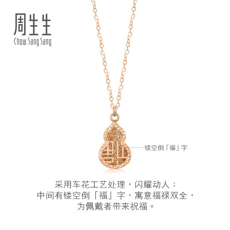 周生生18K玫瑰金福禄葫芦项链福字吊坠女款 挂坠珠宝首饰92528N