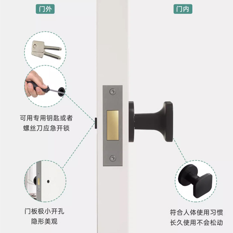 隐形门锁专用卧室极简暗门把手白色黑隐藏圆形房间室内单面锁