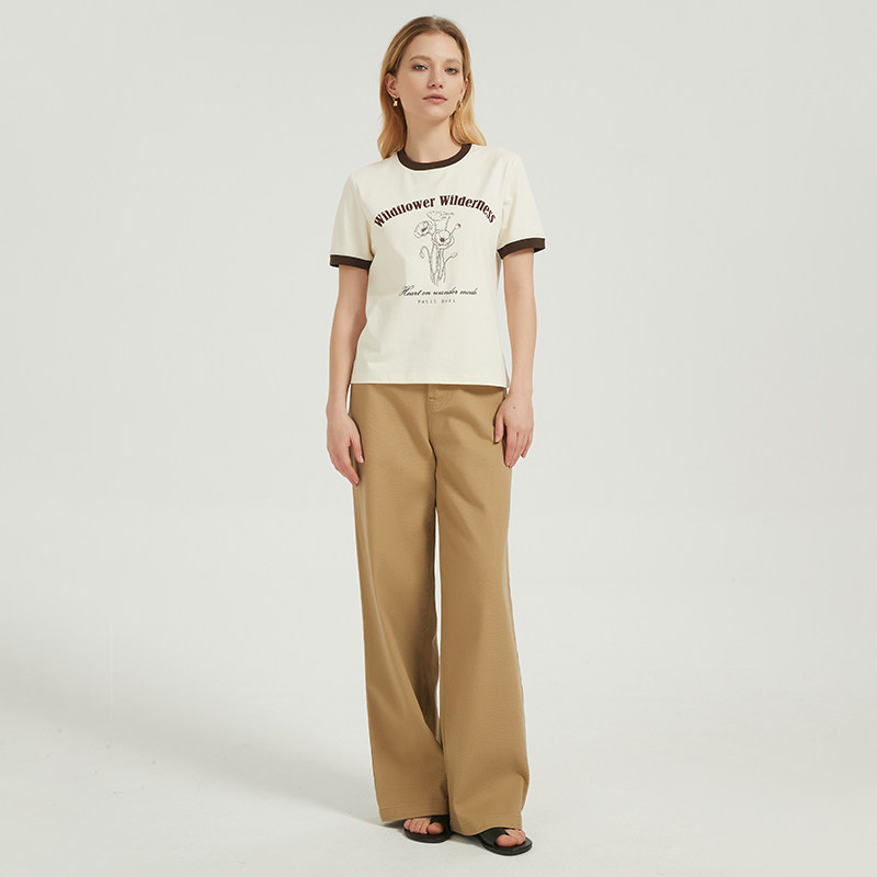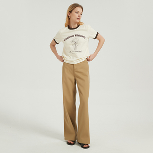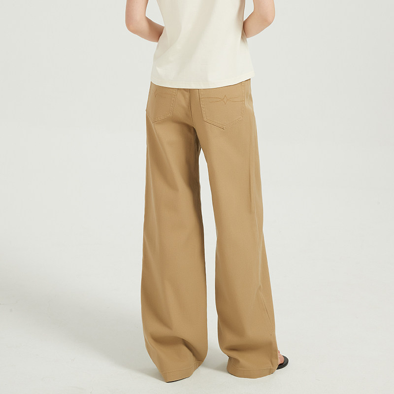 Bari 显瘦垂感休闲长裤 高腰宽松直筒牛仔裤 女 卡其色阔腿裤 Petit