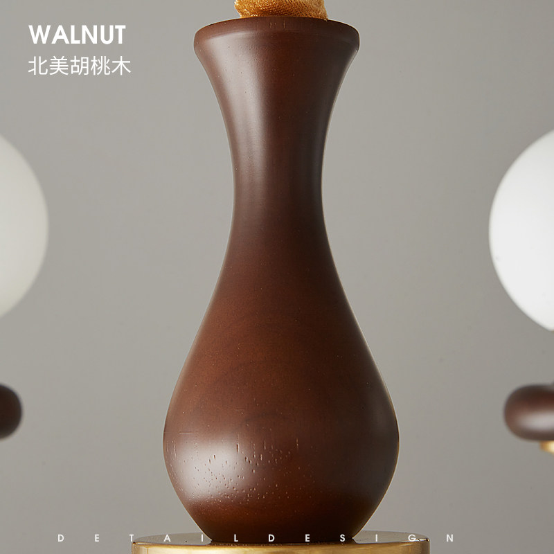 2025新款 全铜魔豆吊灯中古风客厅吊灯大厅主灯复古胡桃木灯具 法式