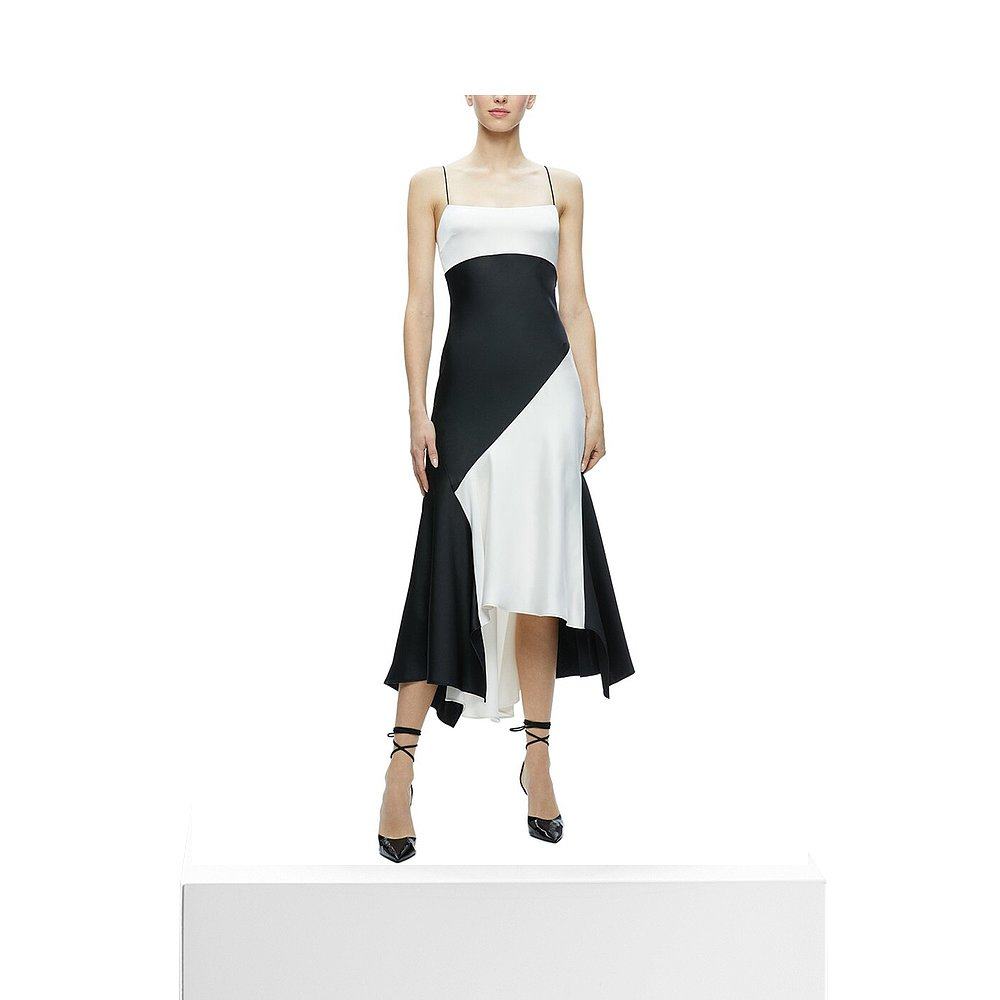 超好看法式 2025高端精致显瘦缎面吊带裙 烫金醋酸连衣裙长裙女春季