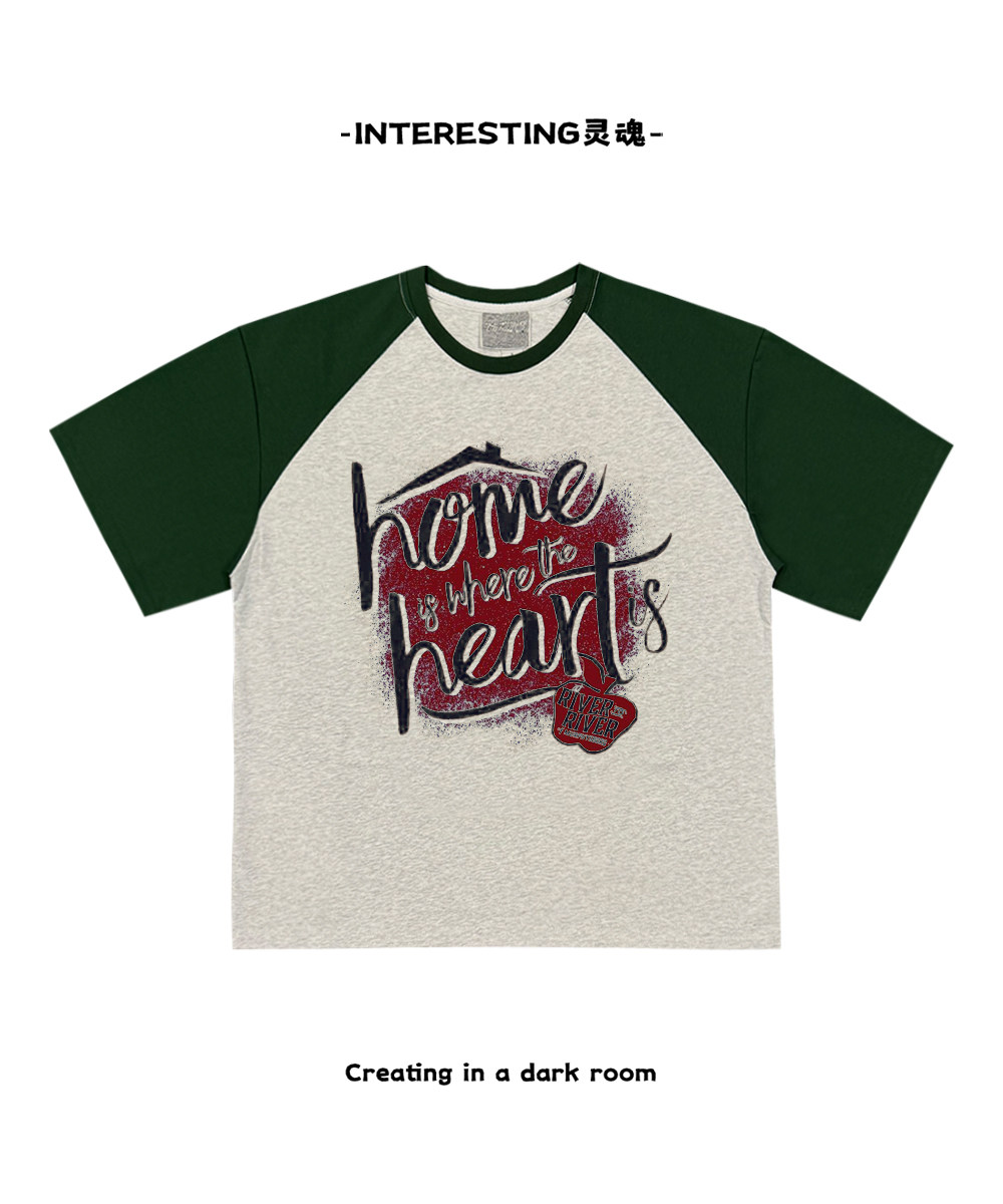 interesting灵魂 欧美ins风街头纯棉oversize阿美咔叽设计插肩袖