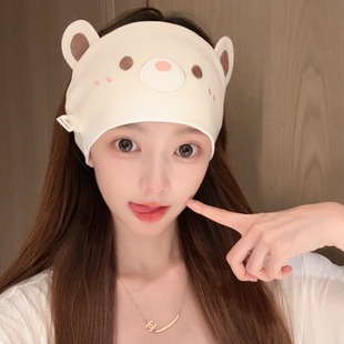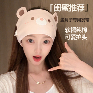 可爱小熊月子发带秋冬季 坐月子头巾帽子防风保暖 加宽加大高弹薄款