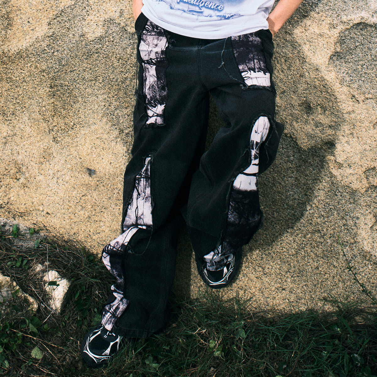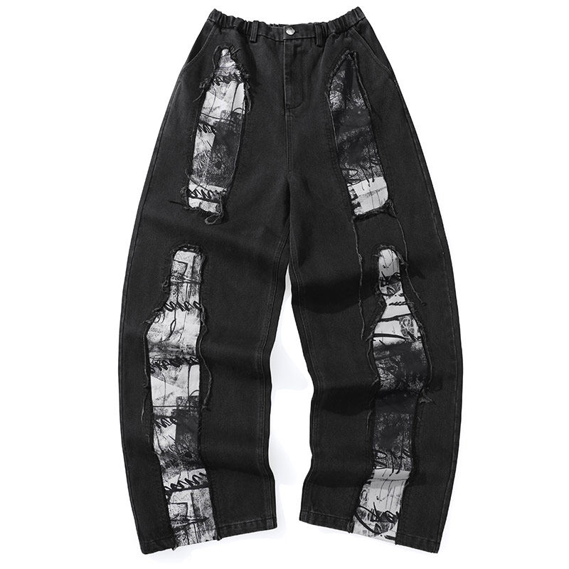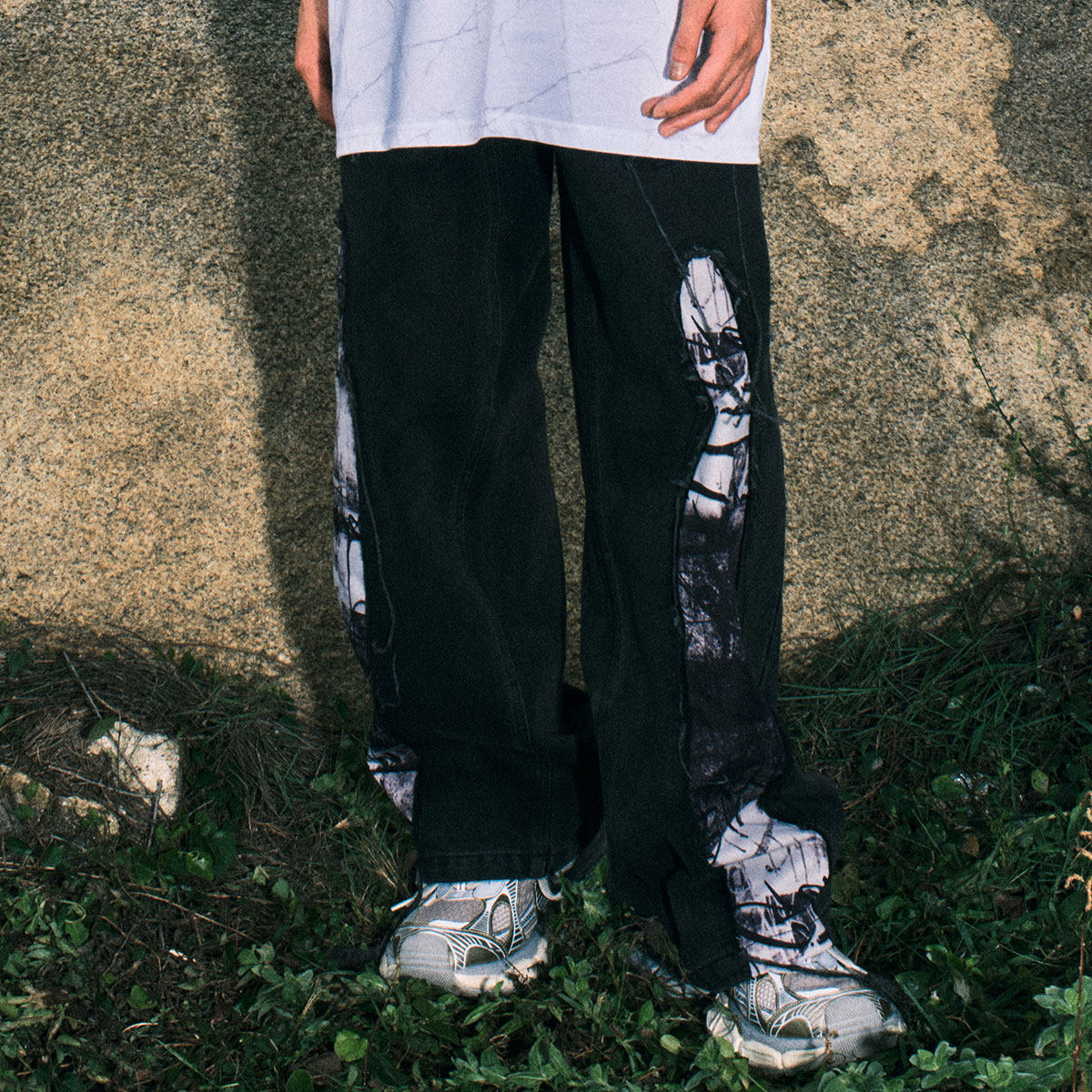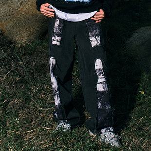 子张函瑞同款 秋冬裤 复古直筒水洗宽松牛仔裤 GENANX闪电潮牌美式