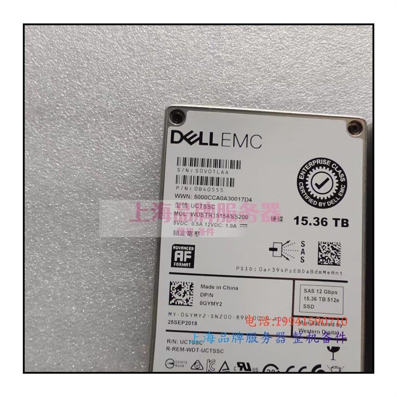 SAS 15.36T 2.5 SSD 通电时间短 戴尔 0GYMY2企业级固态硬盘 EMC
