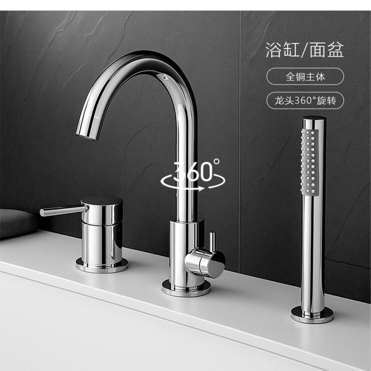 淋浴龙头全铜混水阀花洒沐浴套装 浴室浴缸混合开关三联冷热水龙头