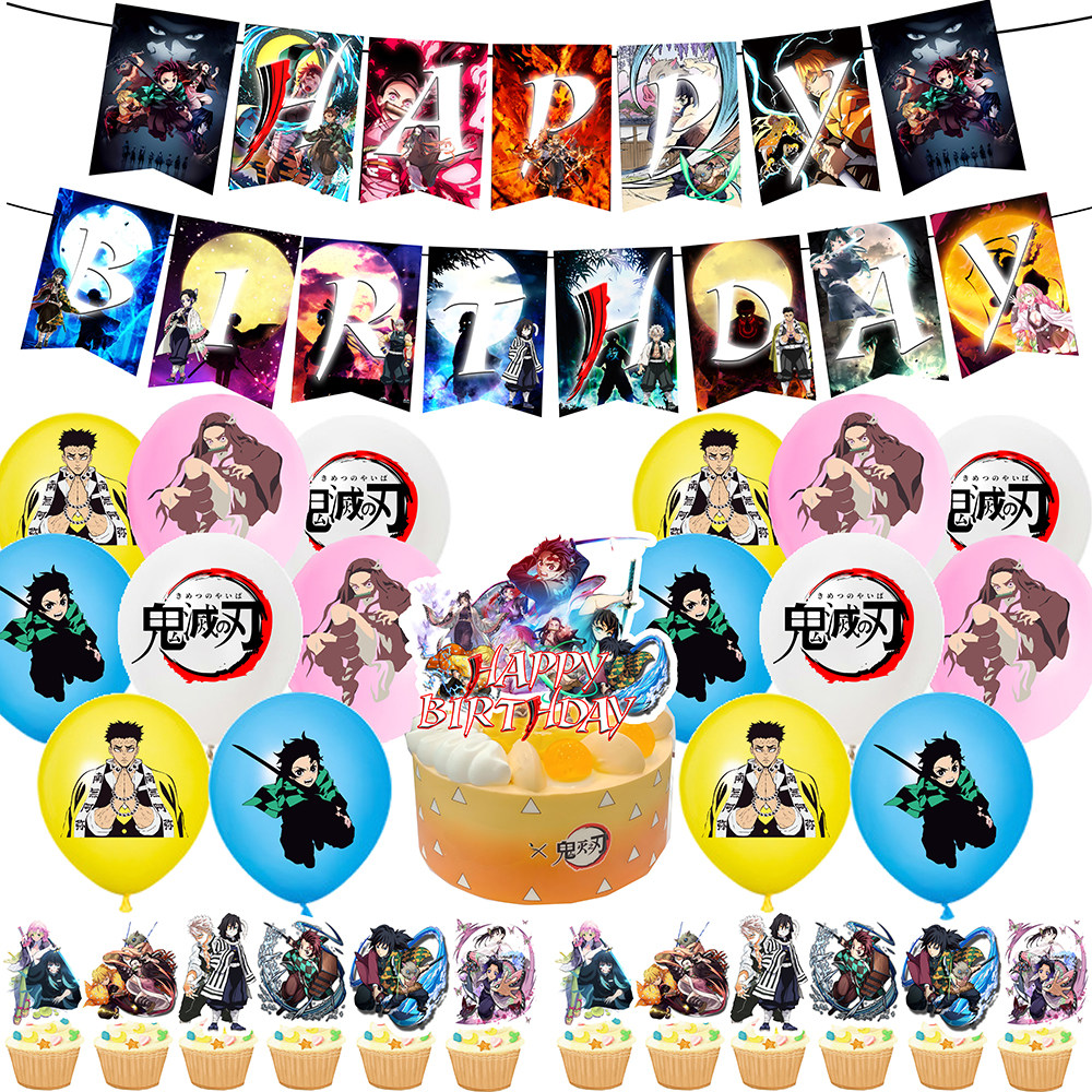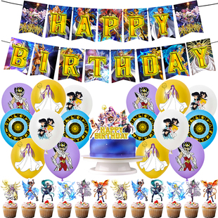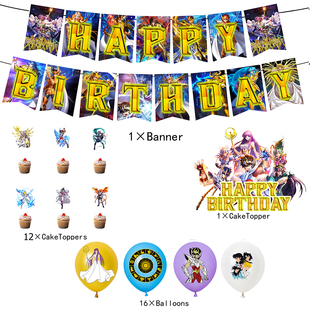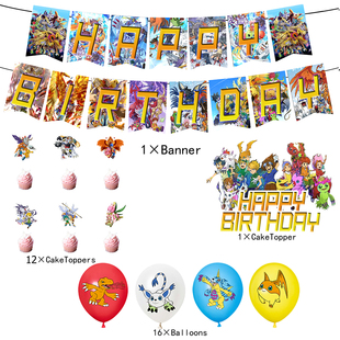 宝贝主题生日派对装 圣斗士 饰Digital 鬼灭 拉旗气球 Monster 数码