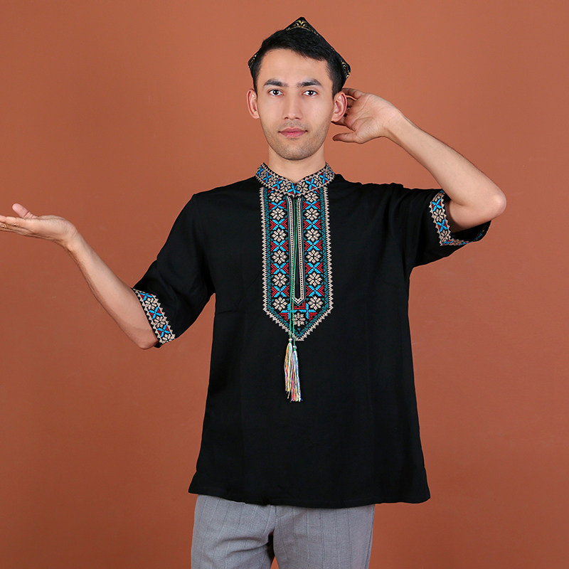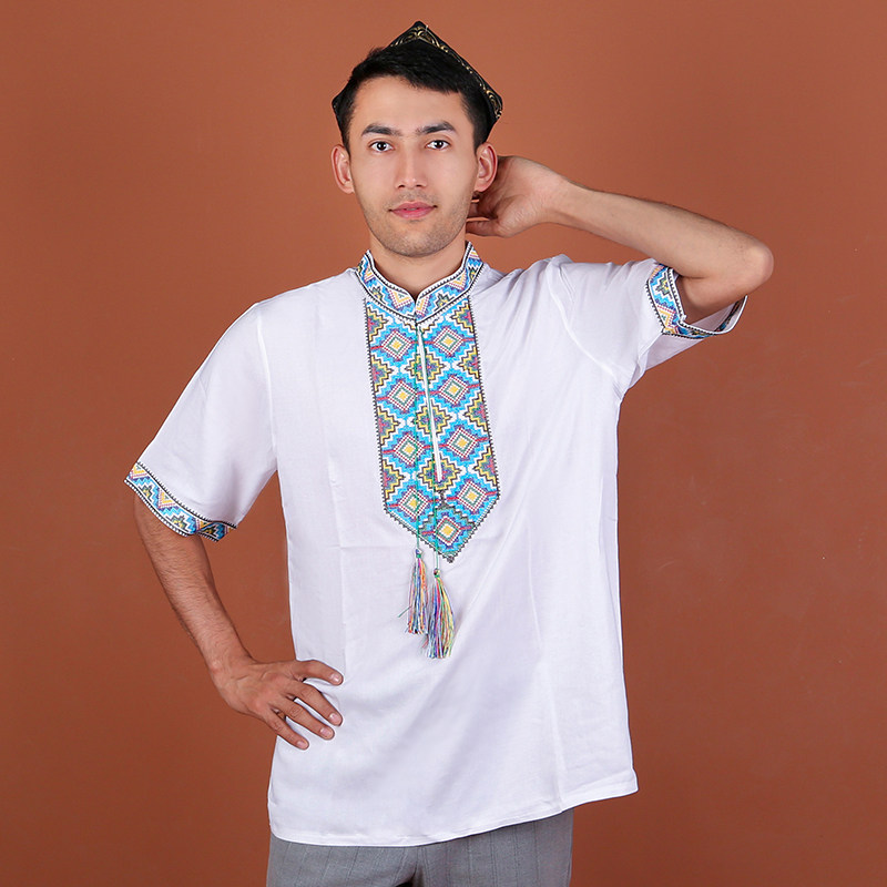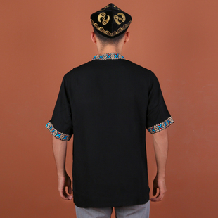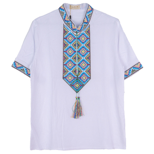立领带穗宽松休闲服饰维吾尔族绵绸衬衣 款 新疆民族风男士 T恤夏季