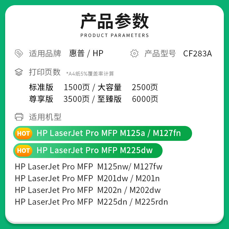 m225dw 127fn fw墨盒m201n 才进适用惠普CF283A硒鼓m125a