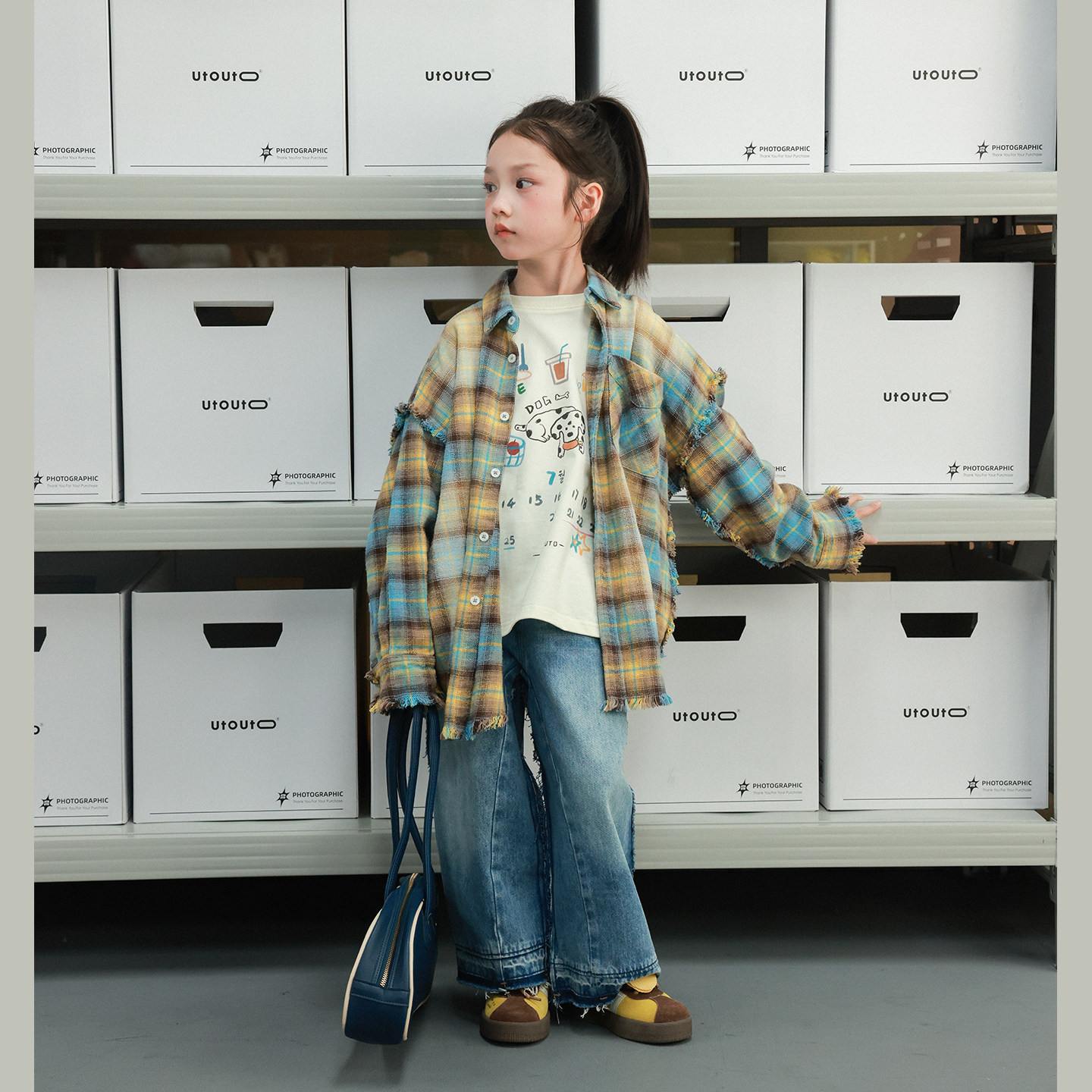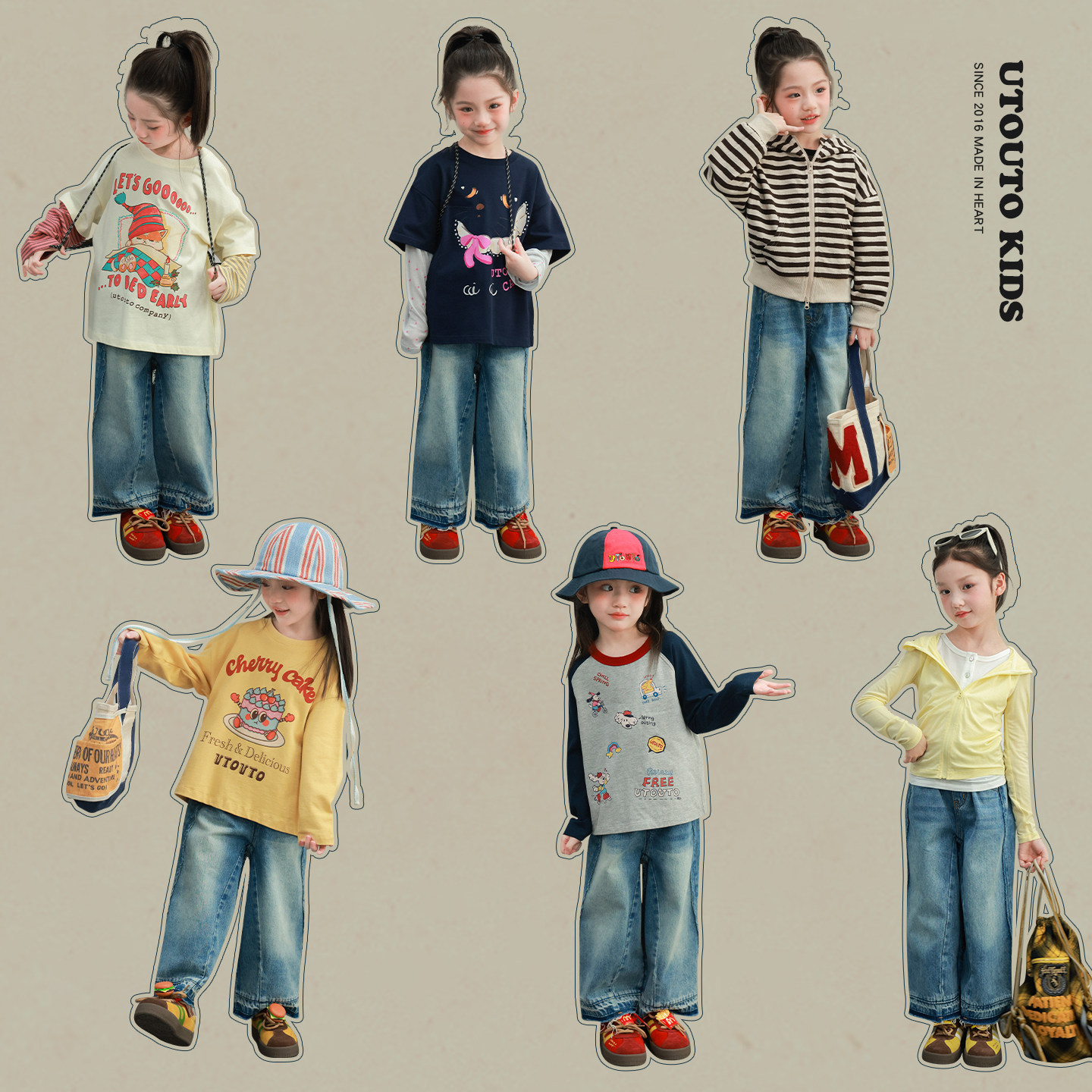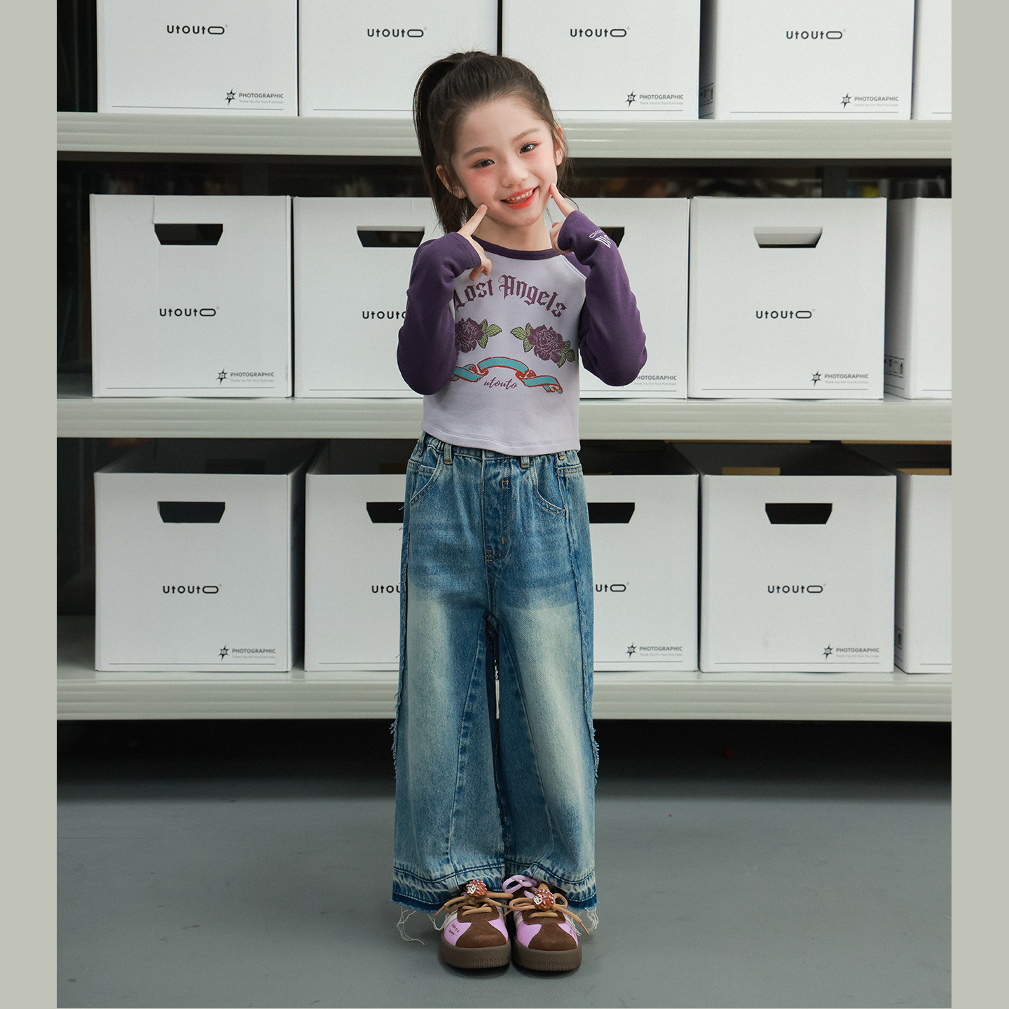 宝儿小众休闲长裤 大耳象女童做旧个性 新款 2026春季 子 须边牛仔裤