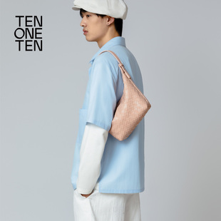 TEN 一包三用手提斜挎单肩腋下编织鼠尾草绿色hobo饺子 ONE