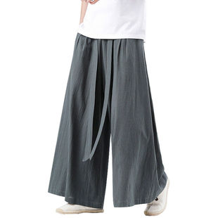 素中国风宋裤 复古风禅修阔腿裤 冰丝裙裤 男冰丝休闲裤 汉服唐装 汉元