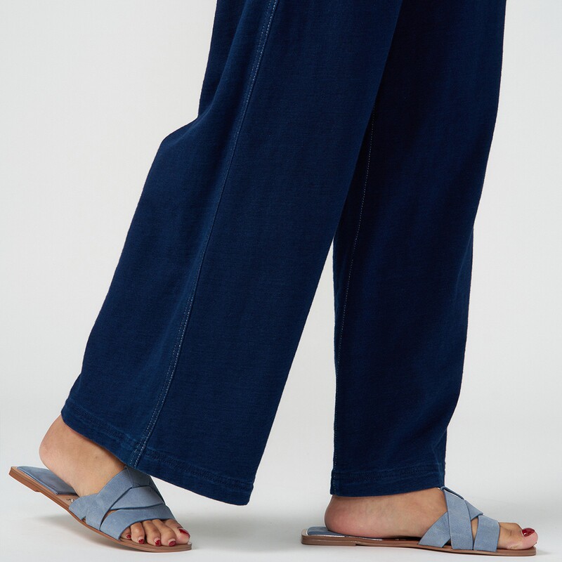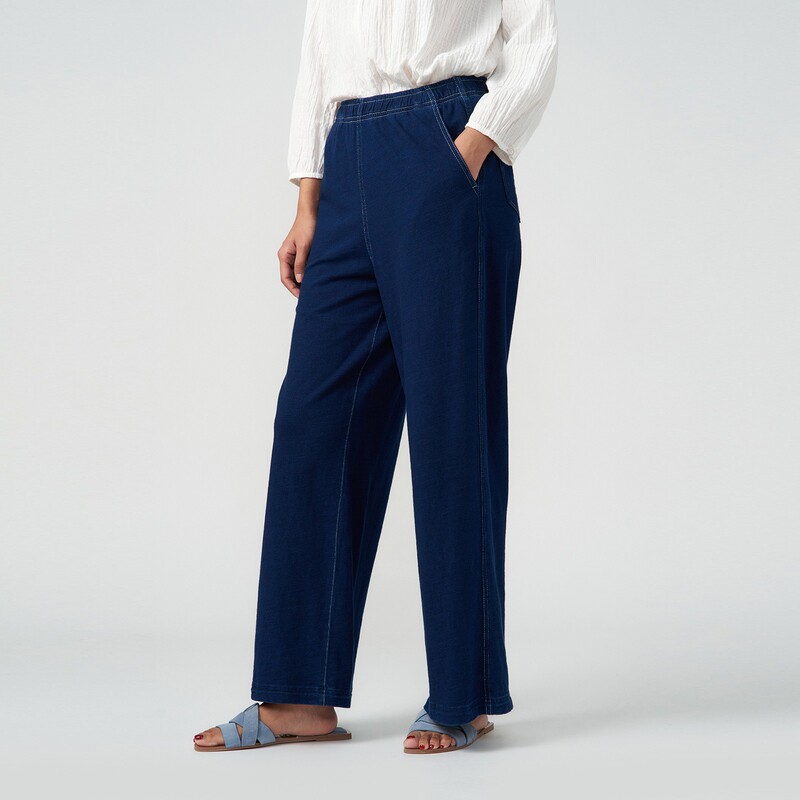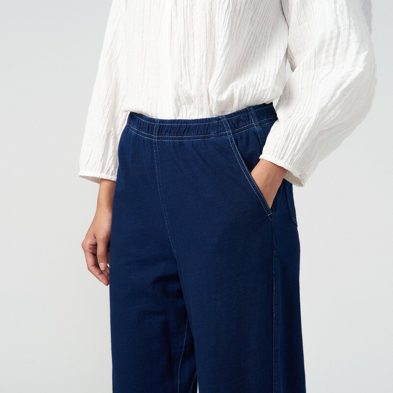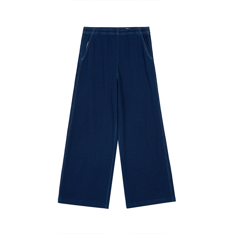 女士航海环保棉靛蓝染竹节针织直筒裤 秋季 klee 素然klee