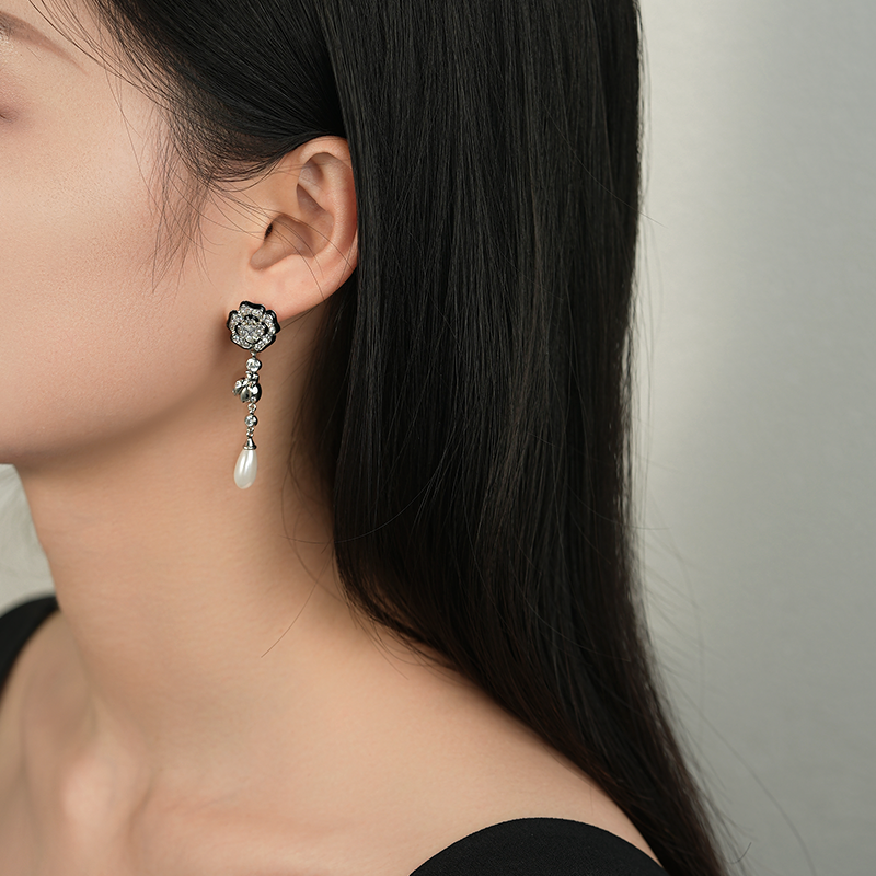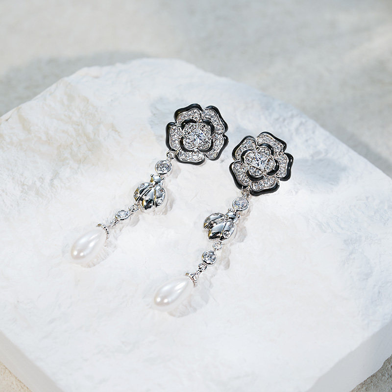 复古绣球耳环2025年新款 精致合成锆石人造珍珠耳钉女简约小巧 爆款
