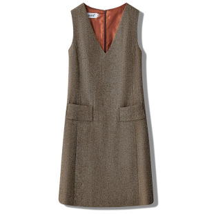 口袋连衣裙秋冬新款 羊毛呢高腰显瘦百搭马甲裙呢子背心裙打底裙