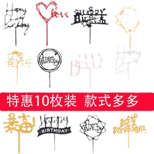 情人节ins简约网红亚克力生日快乐插牌10个特惠装 birthday happy