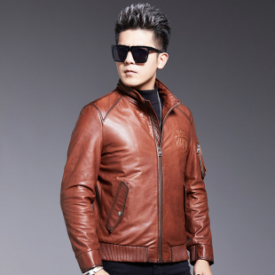 修身 机车头层牛皮韩版 皮夹克立领秋冬外套 真皮皮衣男短款 海宁男装