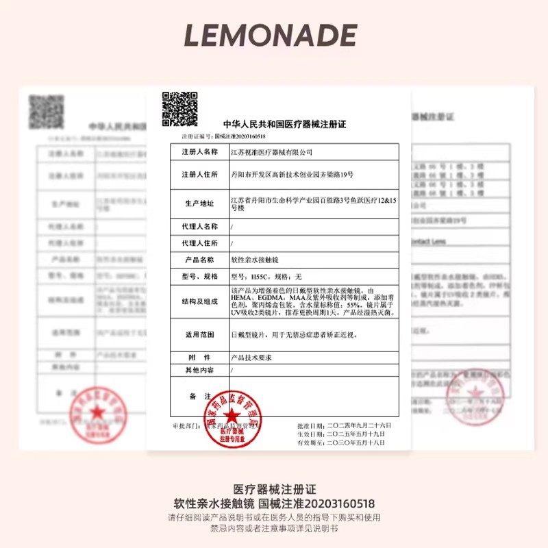 美瞳日抛10片装 官网三明治 大直径LEMONADE彩色隐形近视眼镜女正品