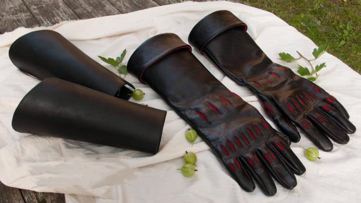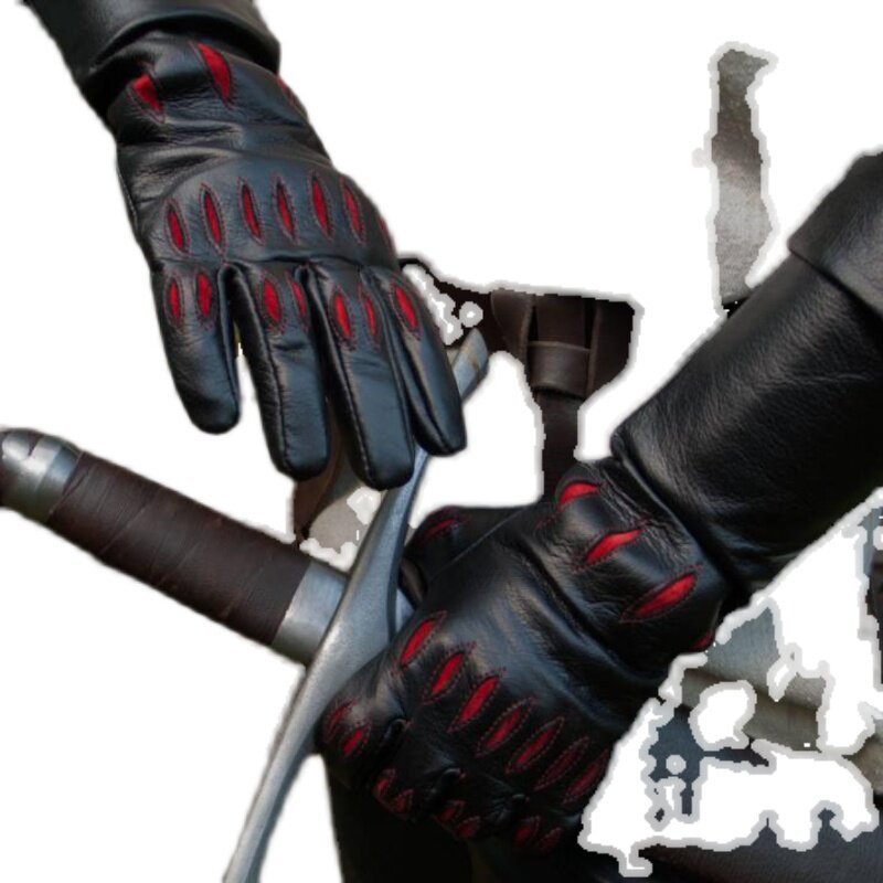 俄罗斯代购 Hunt◇手作狂猎刺客护手护腕黑色皮革红色绒面革手套