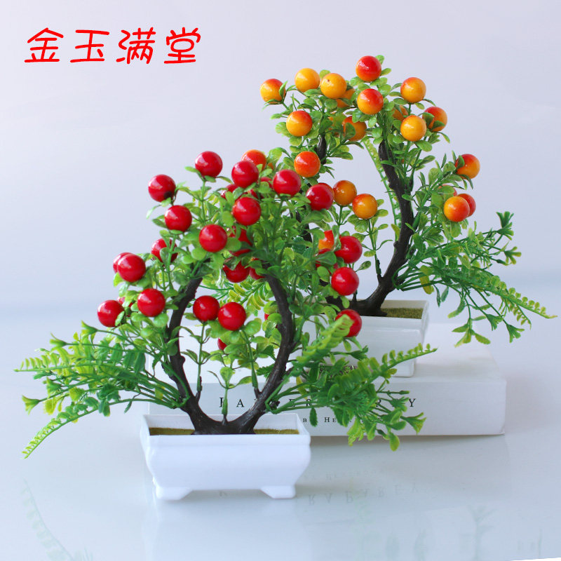 仿真柿子果实树枝柿柿如意假花摆设客厅插花装 饰花艺摆件干花花束