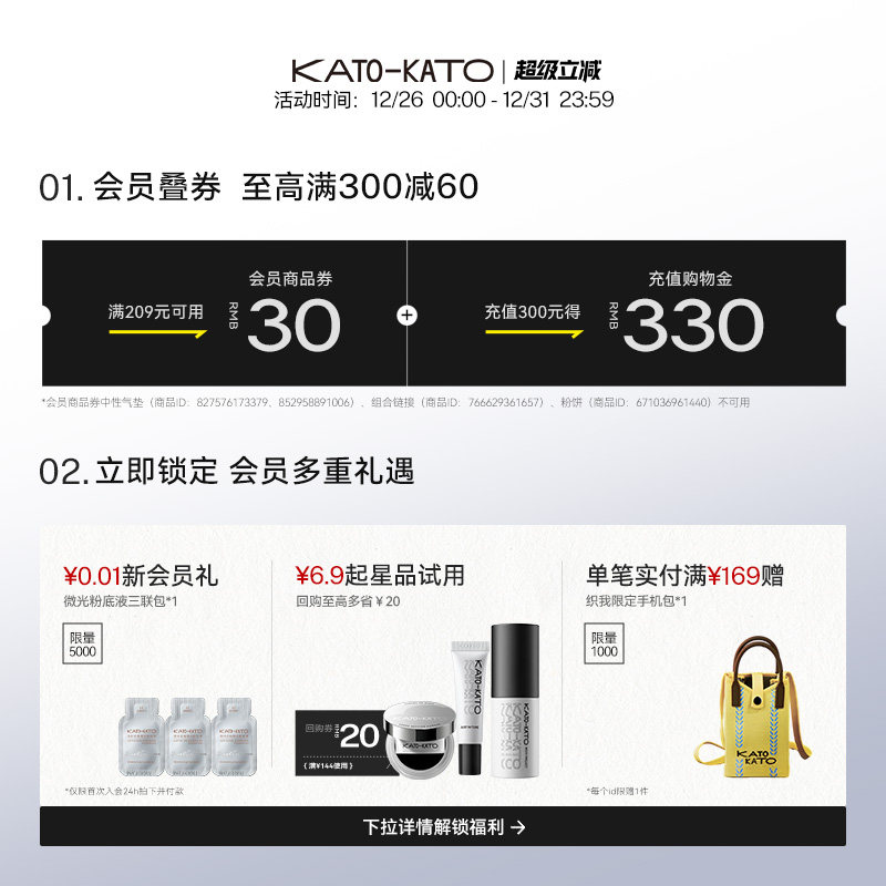 KATO粉底液柔雾微光持妆不脱妆干皮混油皮遮瑕保湿 张康乐同款
