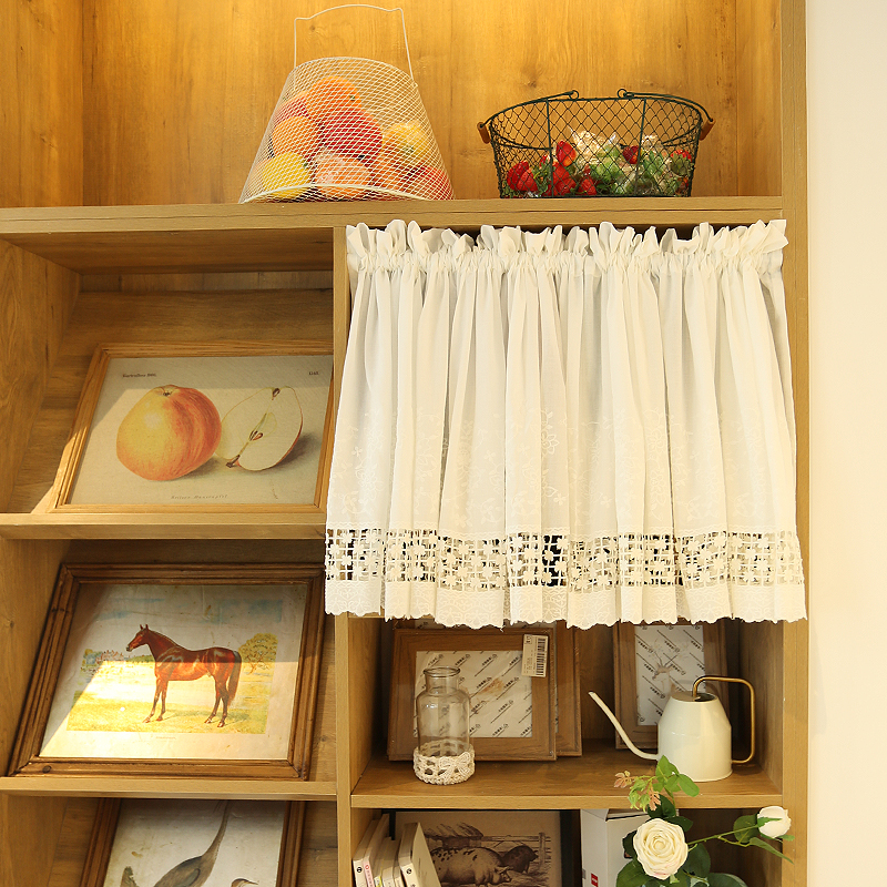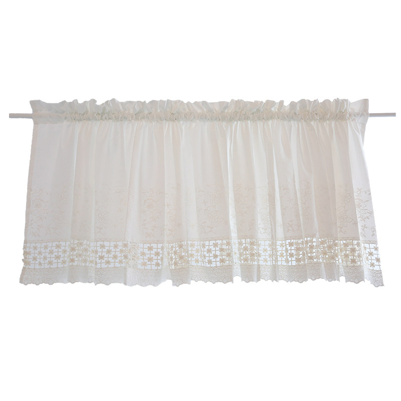 鸢尾乡旅四叶草半帘美式 门帘绣花穿杆帘柜帘防尘帘咖啡帘纯色