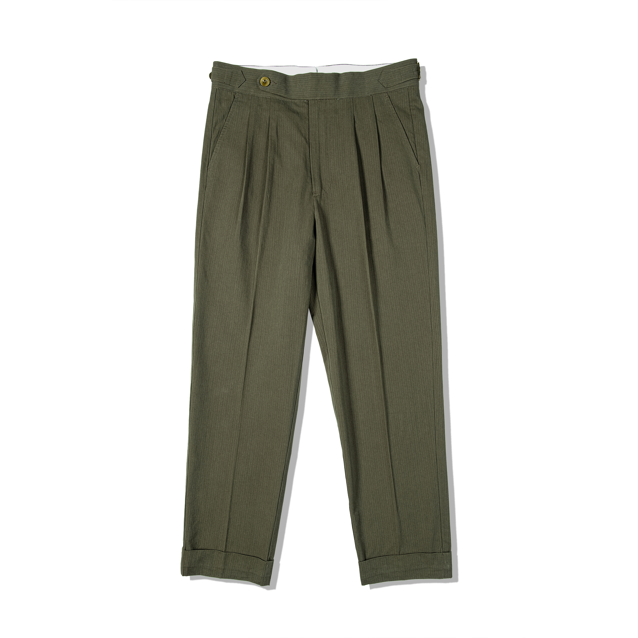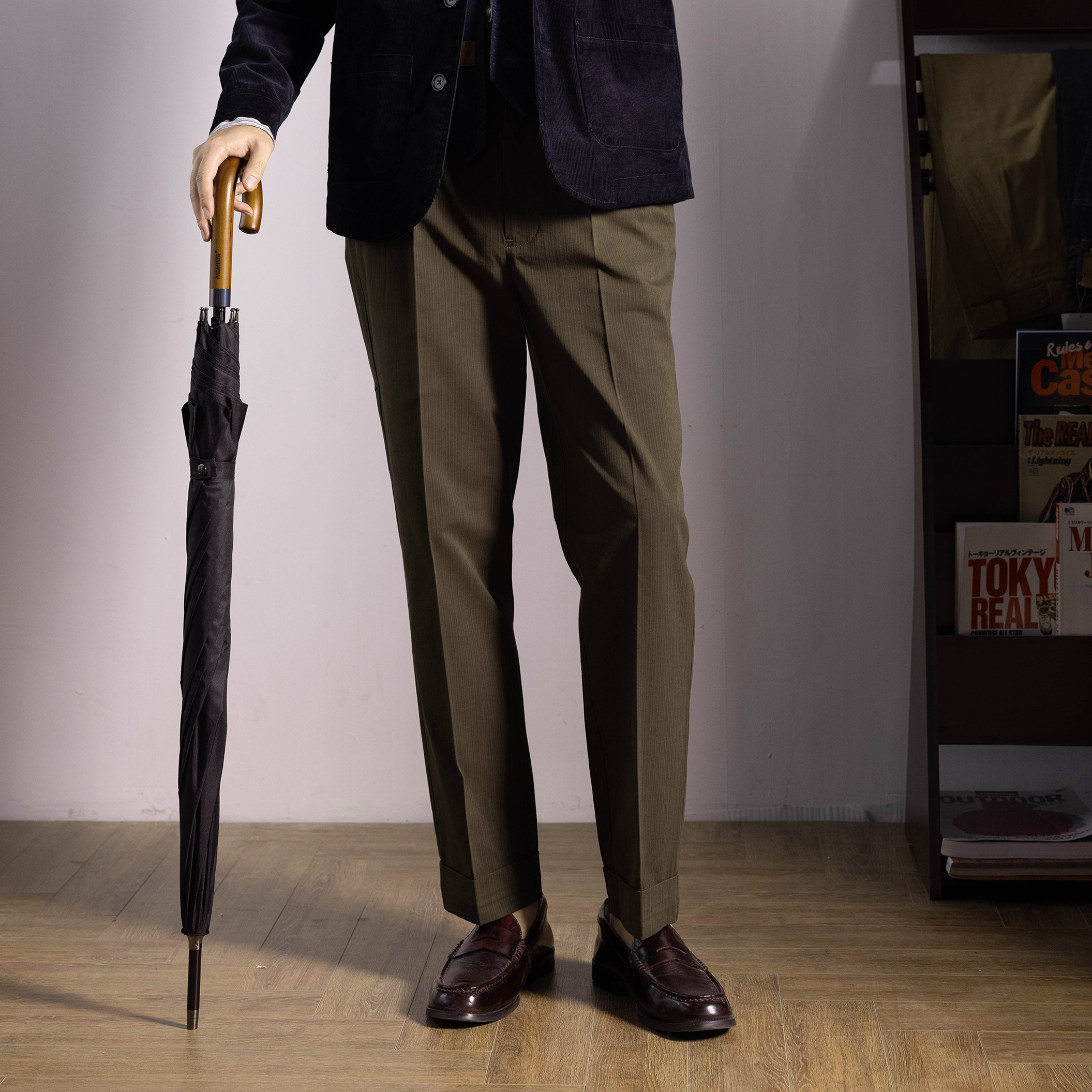 休闲长裤 男复古巴黎扣高腰双褶翻边鱼骨纹意式 那不勒斯西裤 红风