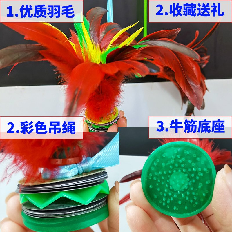 鸡毛毽子儿童小学生幼儿园带绳子专业比赛毽球踢键子健身羽毛花腱
