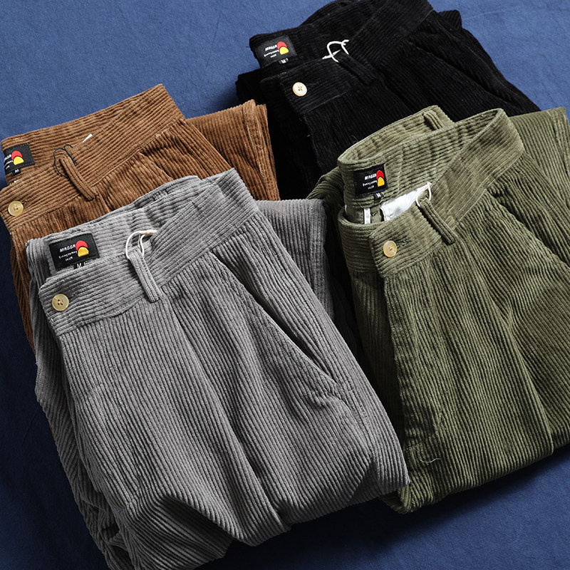 潮男 直筒宽松长裤 日单复古老爹裤 日系厚实纯棉水洗灯芯绒休闲裤