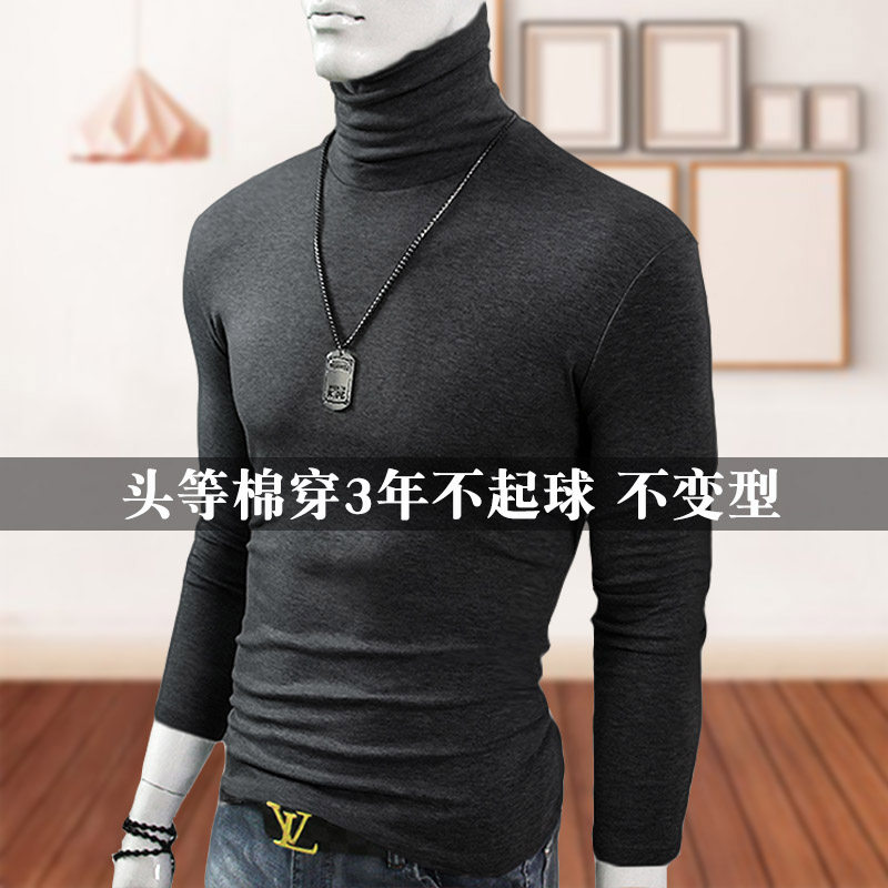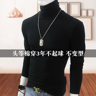 弹力大码 秋冬纯棉高领长袖 修身 男装 t恤保暖体恤上衣纯色潮 打底衫