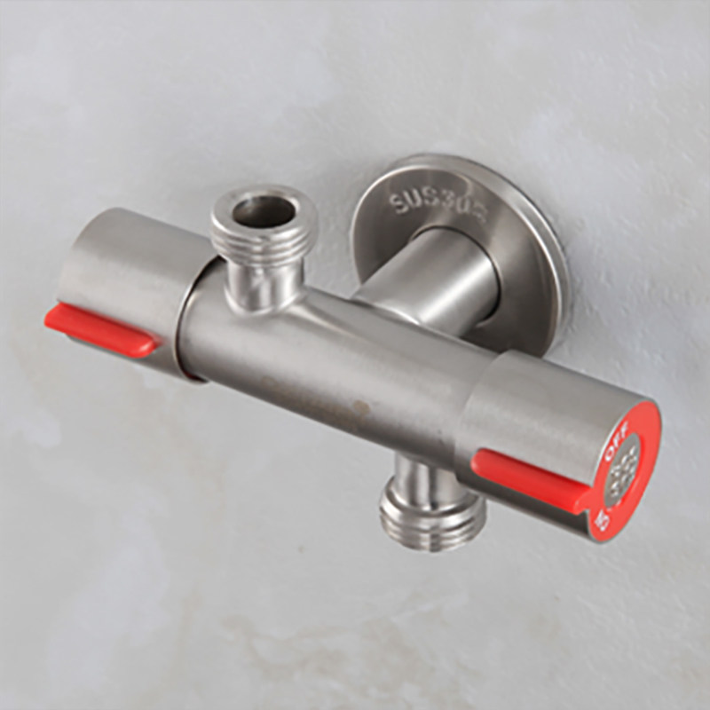 304不锈钢4分一进二出角阀双开关双控马桶三通一分二双出水三角阀
