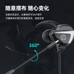 HP惠普游戏有线耳机入耳式 耳麦带麦降噪麦克风电脑电竞专用吃鸡