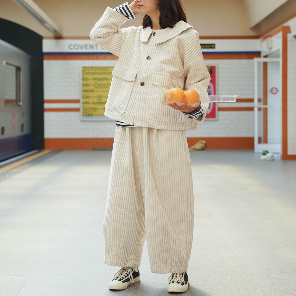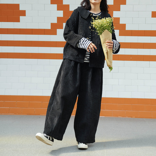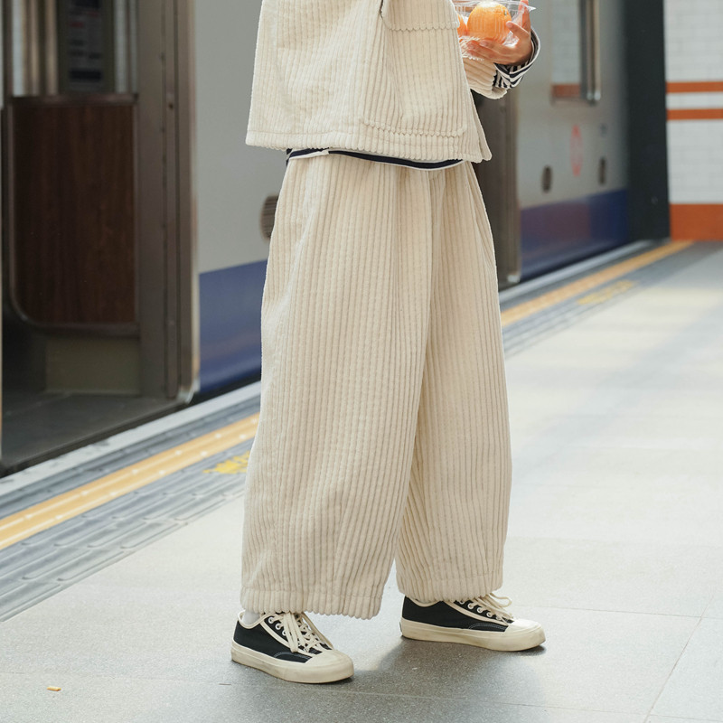 原创自制 收腿裤 日系灯芯绒阔腿裤 条绒裤 宽松秋冬长裤 hewu和物