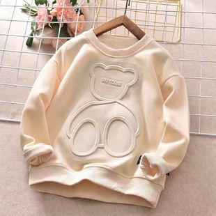 打底衫 小叽咕2023男童卫衣春秋压花长袖 T恤中大童纯棉儿童装