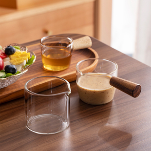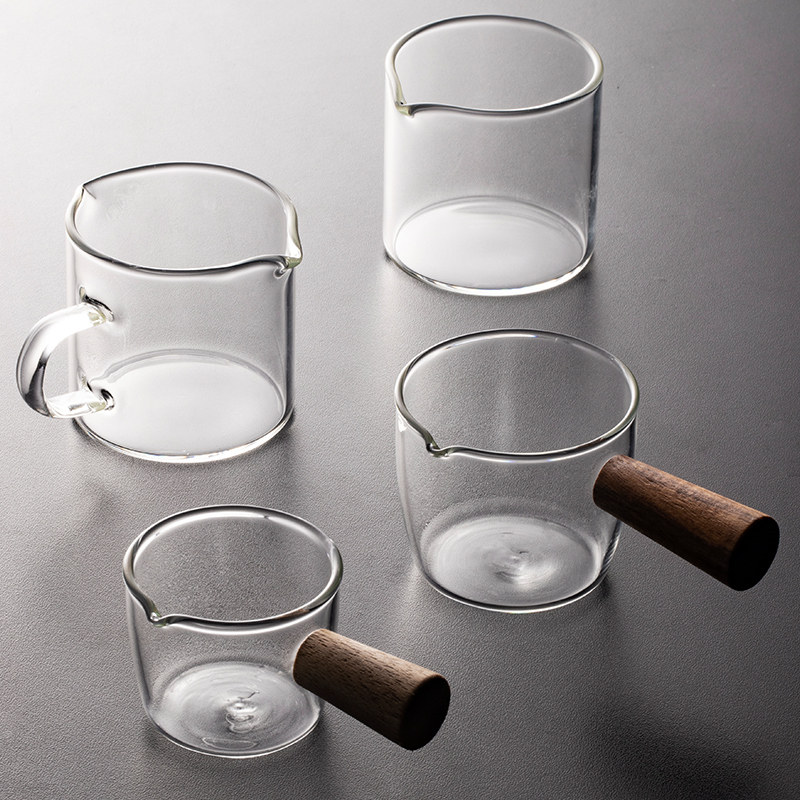 米立风物意式 浓缩咖啡杯木柄玻璃小奶盅酱汁盅迷你奶罐shot萃取杯
