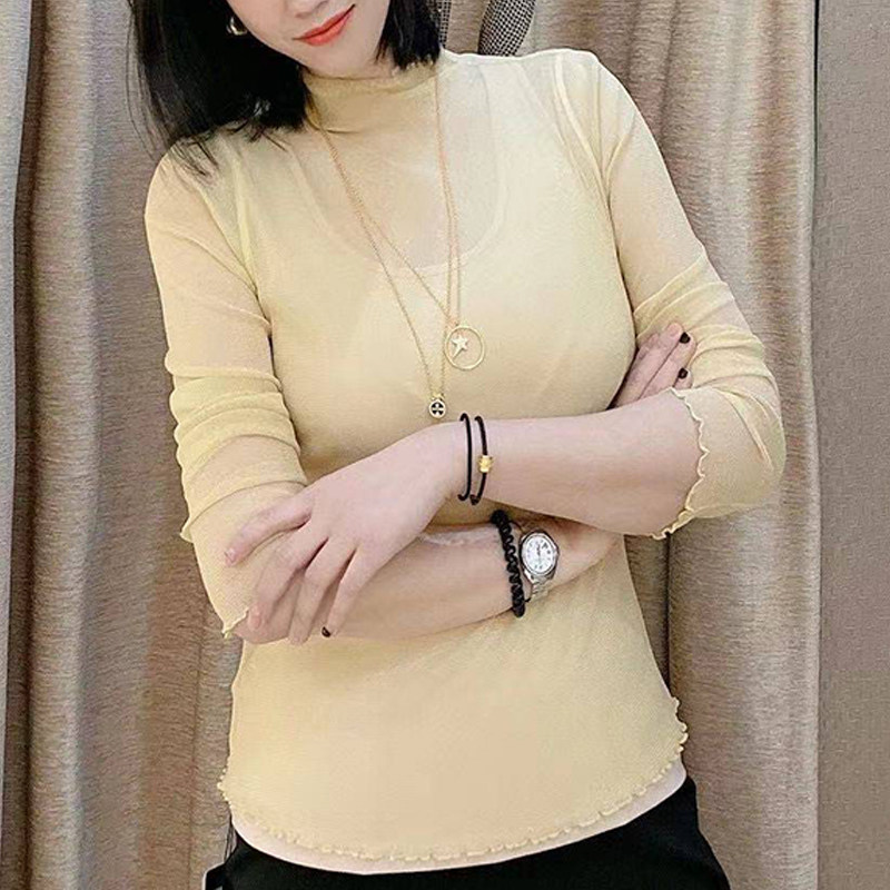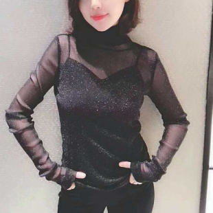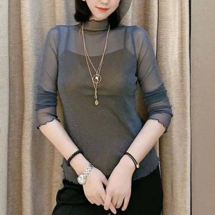 打底衫 正品 高领蕾丝网纱透视薄款 2025春装 内搭T恤女 哥家新新款