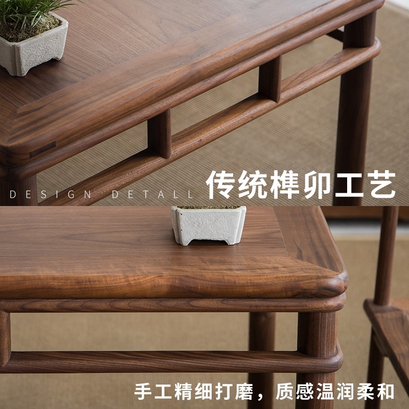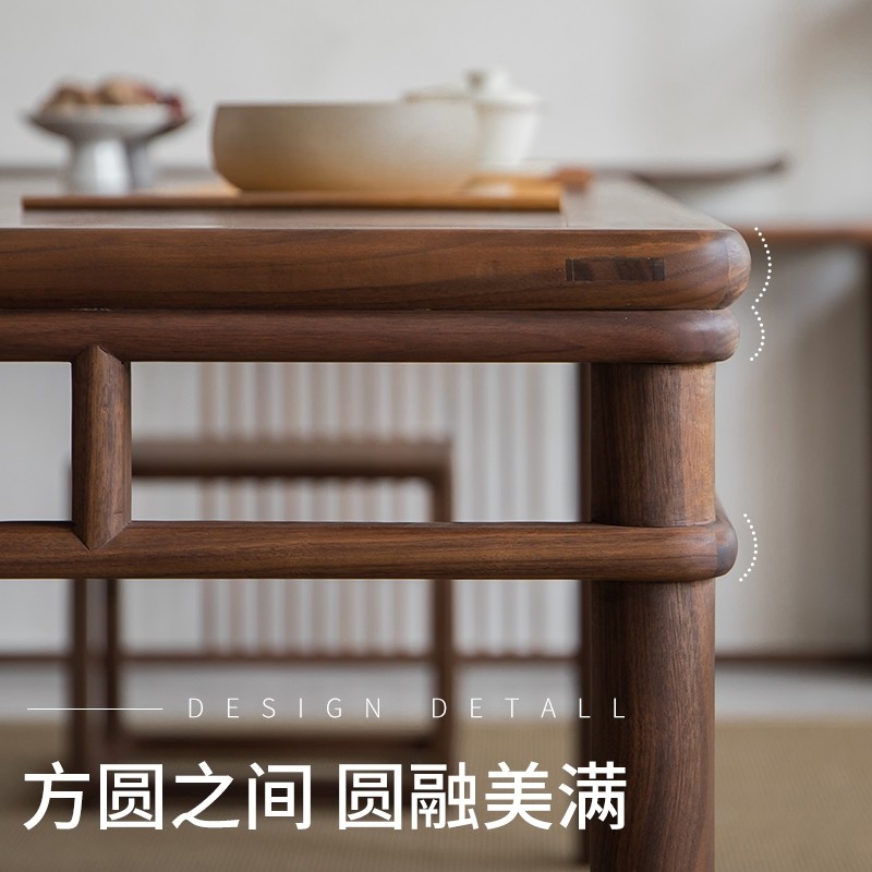 新中式 实木功夫茶台禅意茶室 茶桌椅组合老榆木茶桌黑胡桃木明式