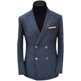 ZBTO深藏蓝色BLAZER布雷泽修身 外套 双排扣商务休闲羊毛便服单西装