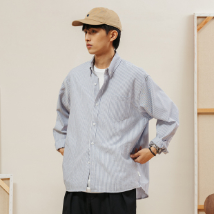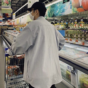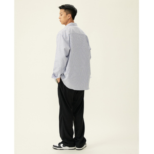 男女秋21AW 衬衫 vermicelli 浅蓝色免烫抗皱条纹宽松廓形长袖 VMCL
