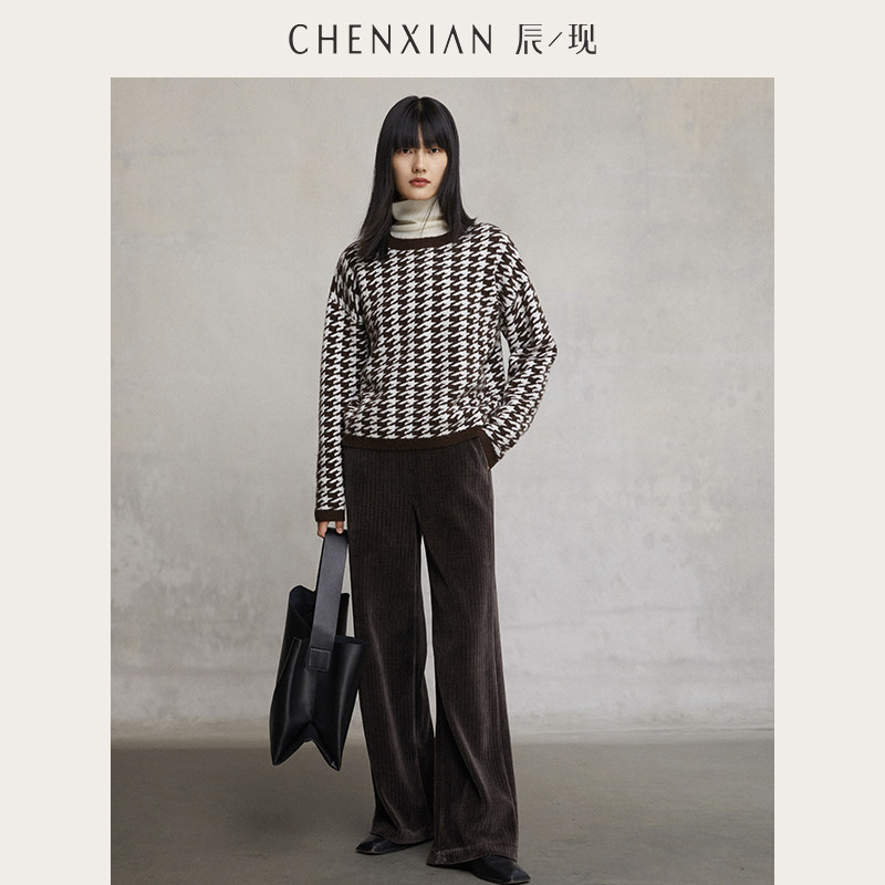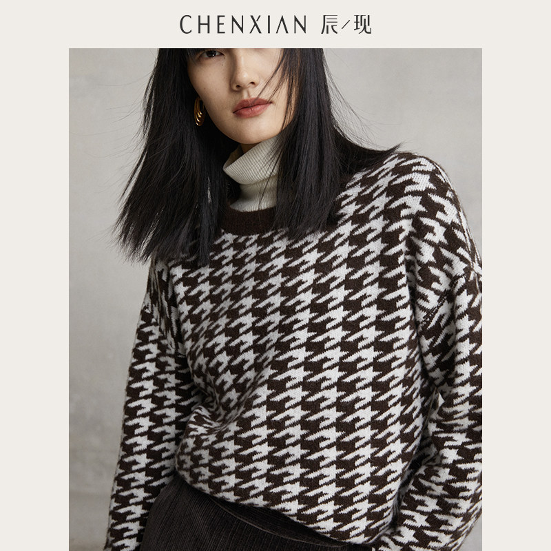 高级感上衣宽松打底针织衫 圆领100%纯山羊绒衫 女高端毛衣秋冬新款